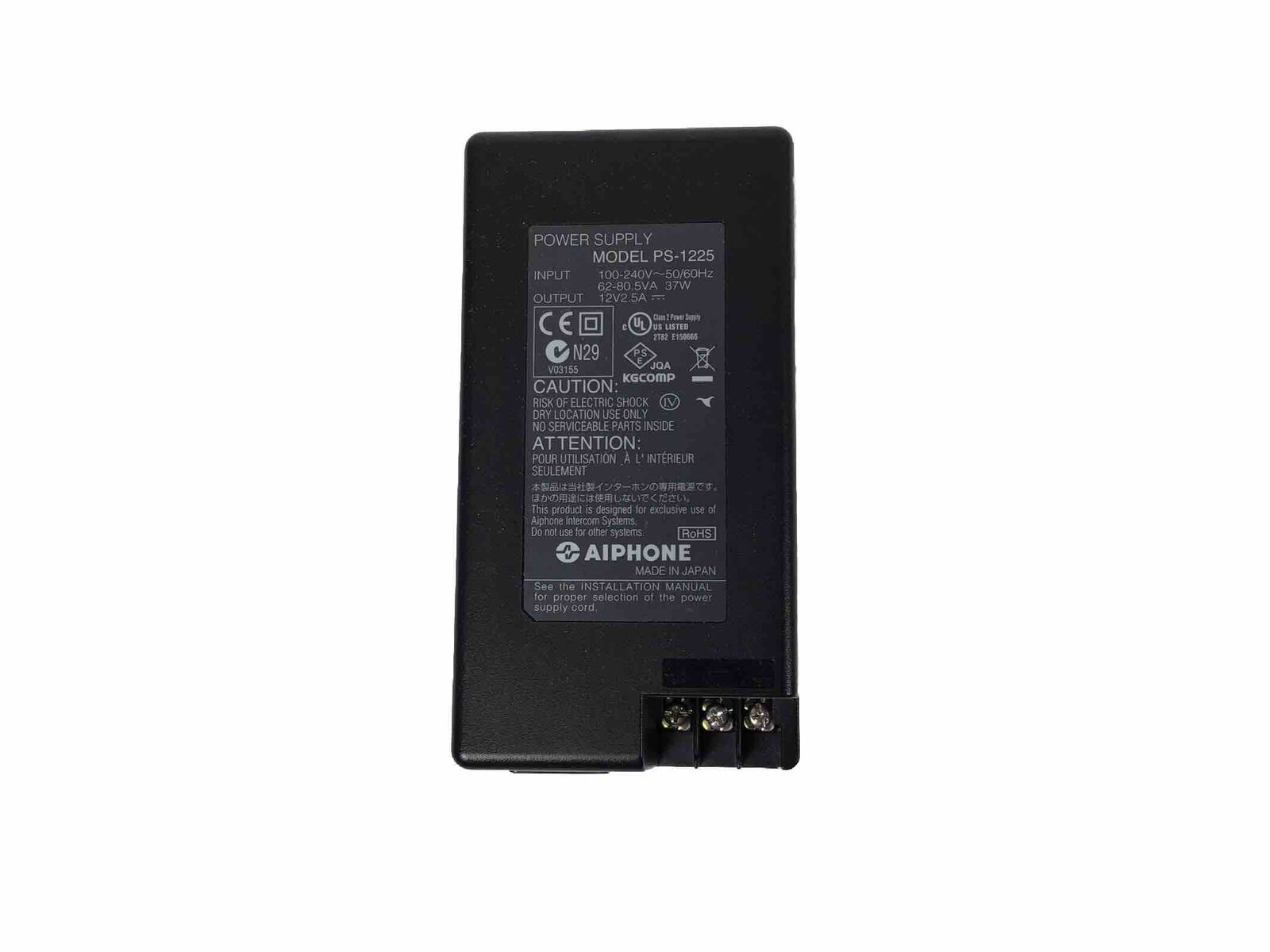 Input 100-240~50/60Hz 62-80.5V A 37W Output 12V 2.5A Class 2 Power Supply Made in Japan Seller’s item location: box 13 Read more