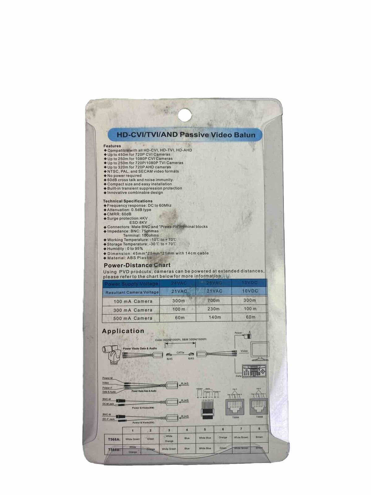 CCTV Coax BNC Video Power Balun Transceiver to CAT5e 6 RJ45 Connector