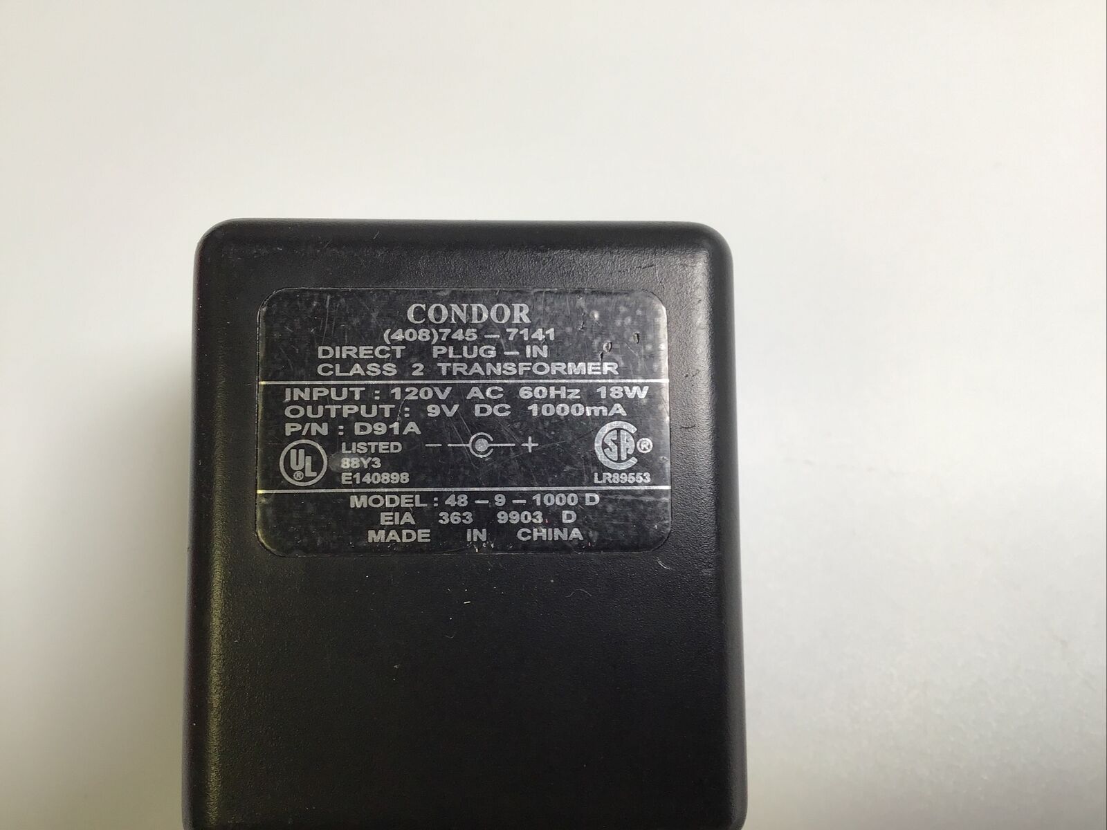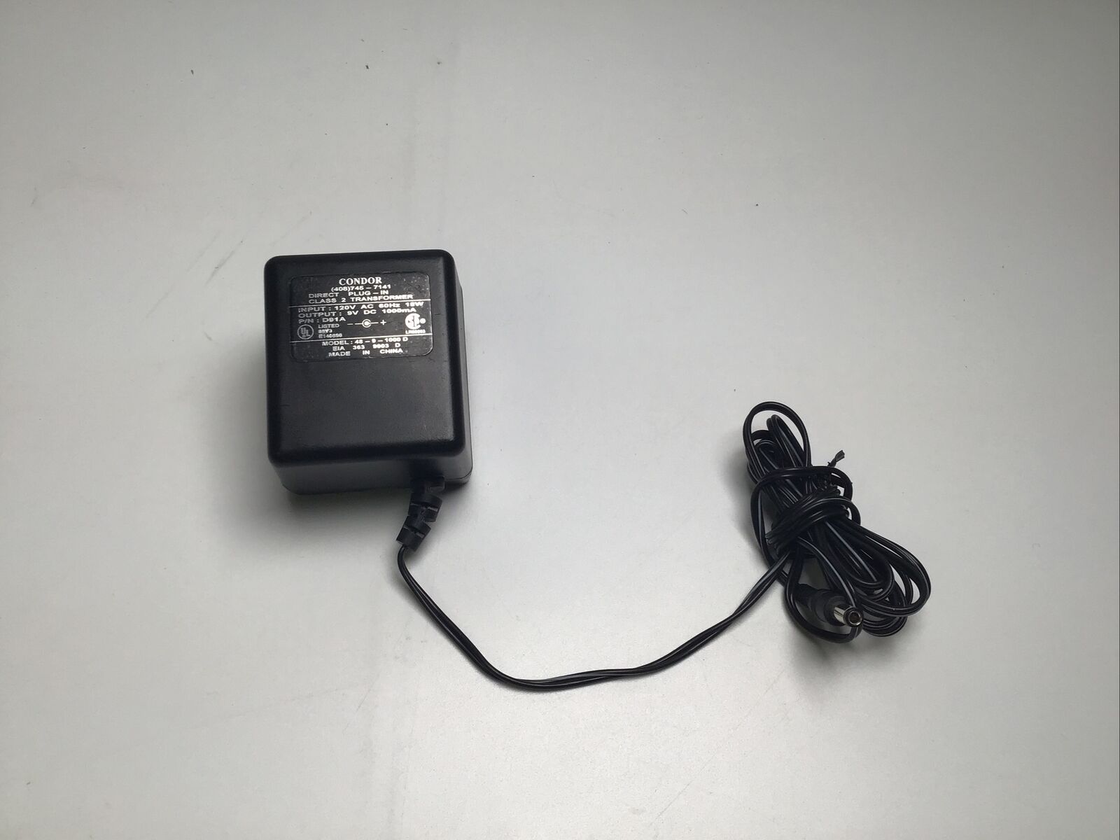 Condor AC/DC Adaptor Class 2 Toy Transformer Model 48-9-1000D
