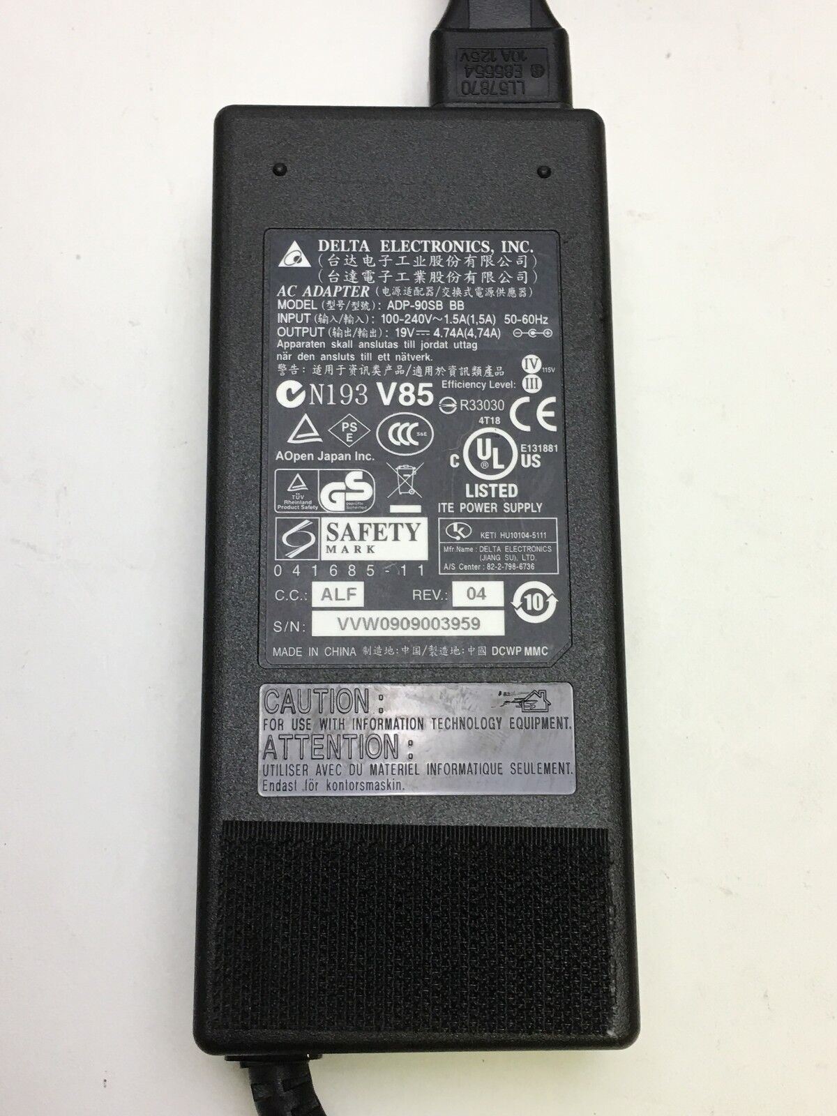 Delta Universal 19V DC 4.7A Power Supply Adapter ADP-90SB BB C9 L26