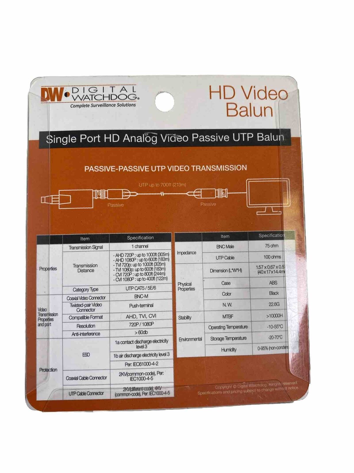 Also known as: DWBALUNHD, 6K-BALUNHD, DWD-DWBALUNHDDigital Watchdog DW-BALUNHD HD Video BalunSellers item location: Box 9 Read more